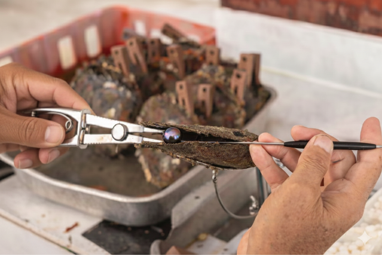 Pearls look different in the Tuamotu and Gambier Islands because their water, sunlight, and temperatures are different. Warm, clear Tuamotu waters create brighter, colorful pearls, while the cooler, darker waters in the Gambier Islands make deeper, darker pearls.