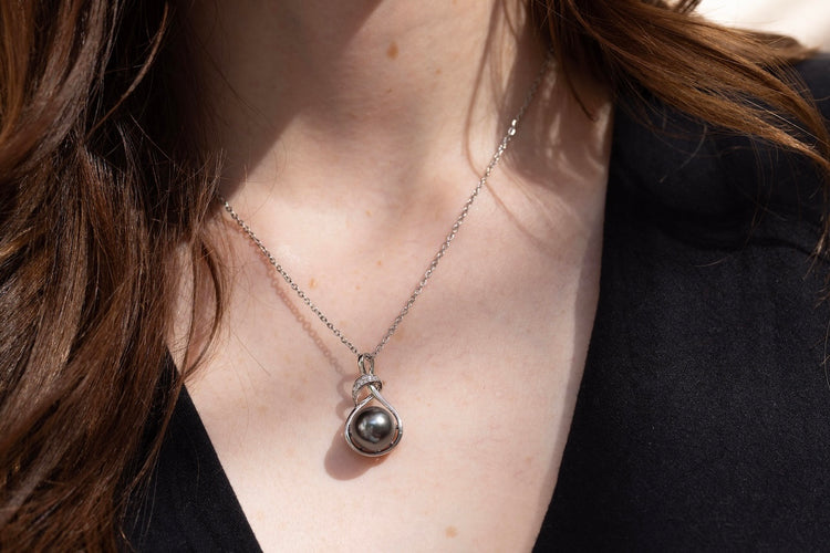 • 12mm genuine cultured pearl from French Polynesia — each one unique with natural dark shimmer