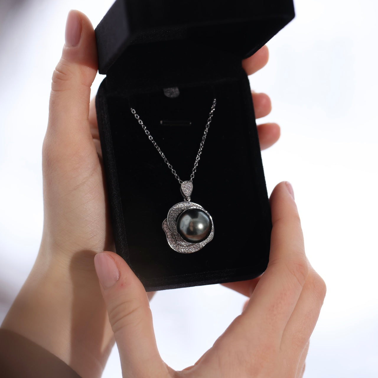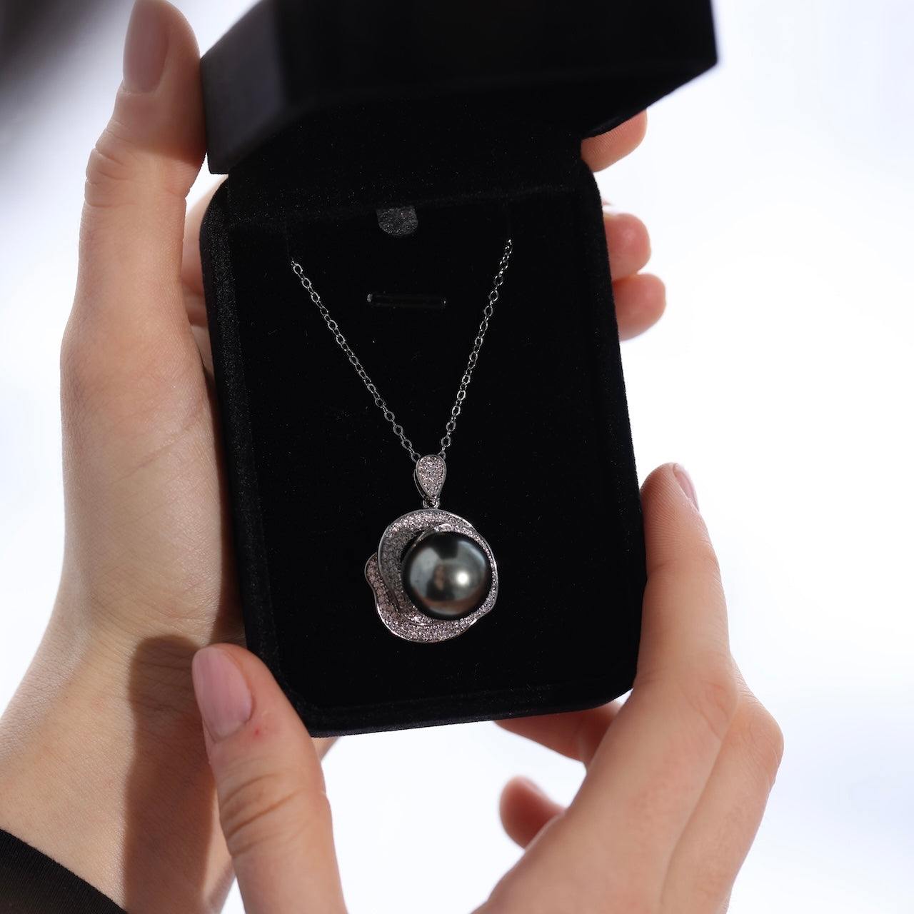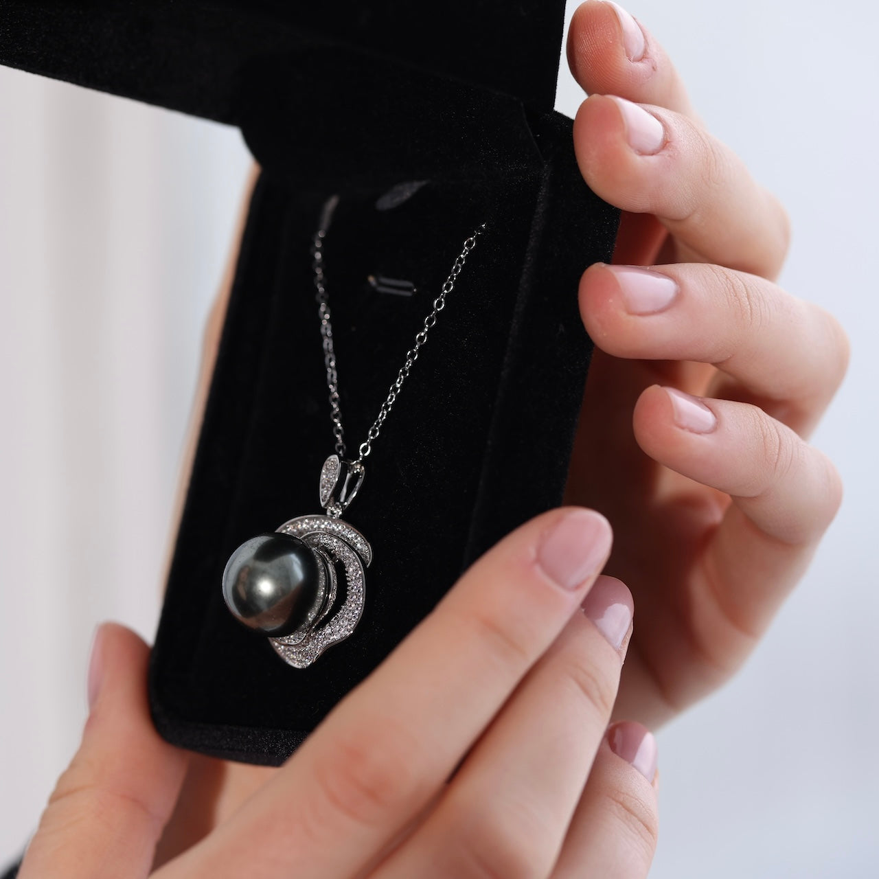 16 MM Natural Black Pearl necklace with a 925 Sterling Silver pendant plated in 18K Solid Gold. The pendant has a durable 0.05–0.1 µm gold electroplating for long-lasting shine and resistance to oxidation.