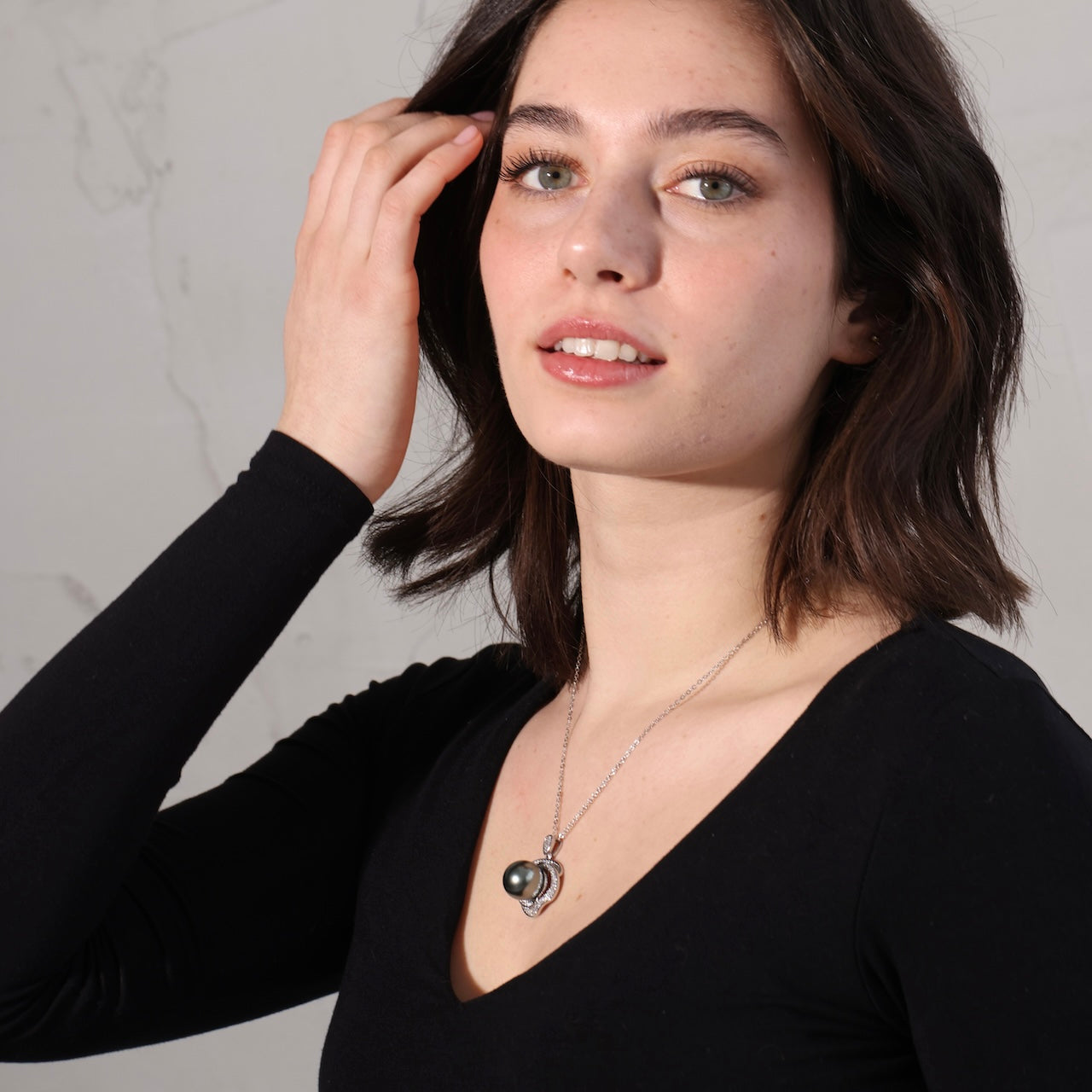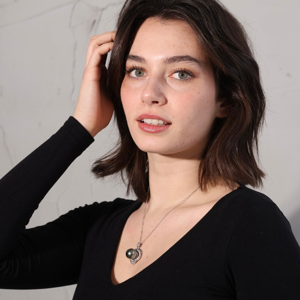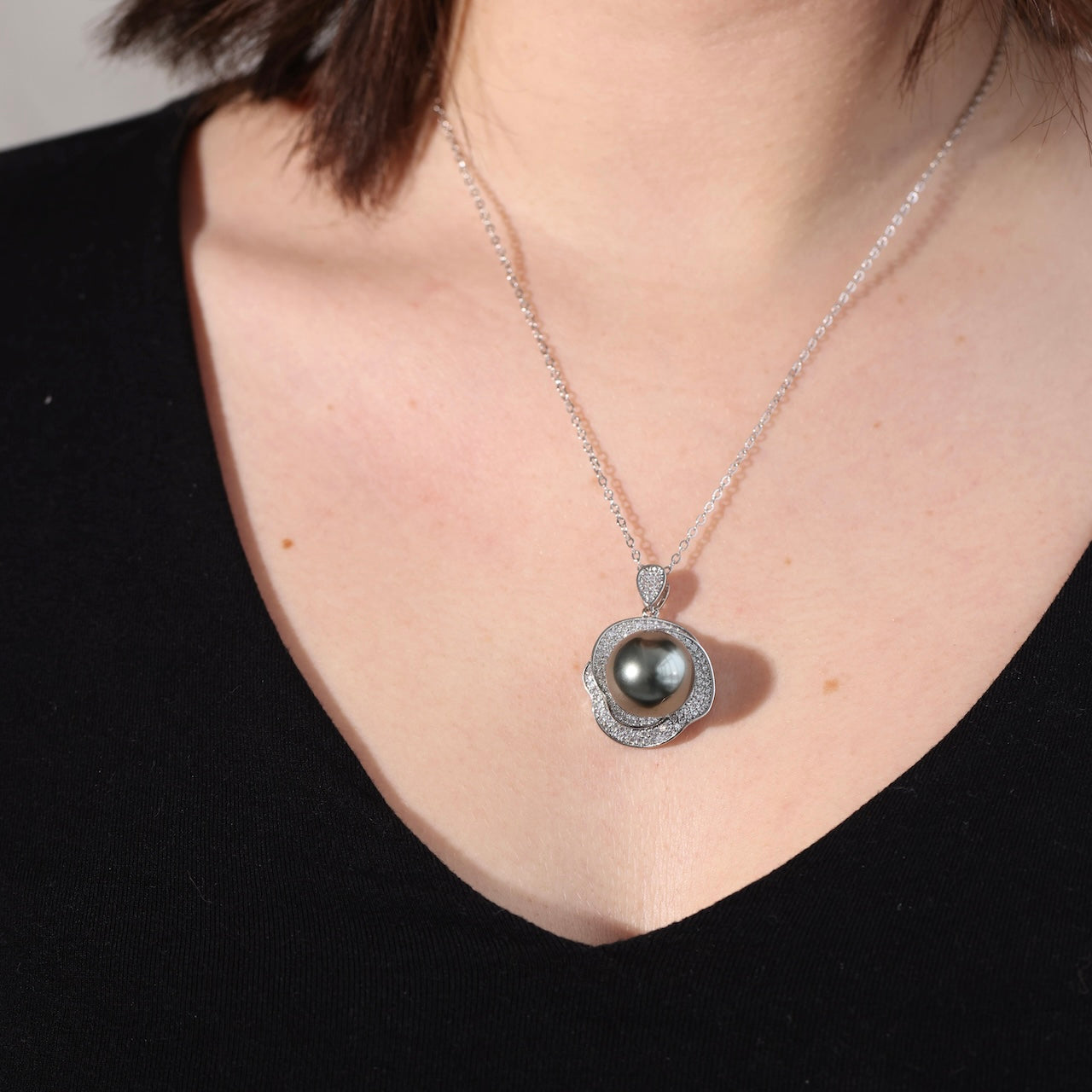 16 MM Natural Black Pearl necklace with a 925 Sterling Silver pendant plated in 18K Solid Gold. The pendant has a durable 0.05–0.1 µm gold electroplating for long-lasting shine and resistance to oxidation.